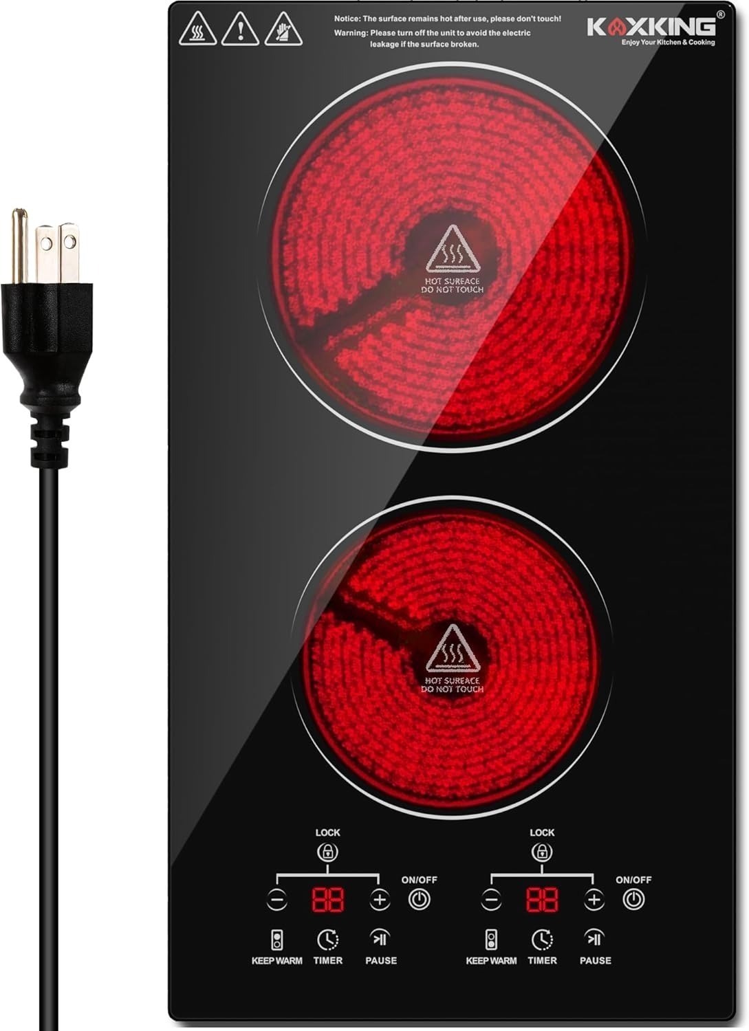 2 burners with 3,000W total power for quick cooking.9 power levels with easy rotary dial controls.